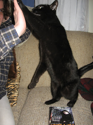 This contest, originally suggested by The Agent, is simple: take pictures of your pets (or the pets of someone else you know) hanging out with a copy of Rosemary and Rue, and submit them here. All pets are eligible. Cats, dogs, pythons, spiny African flower mantises, whatever you have and trust with your book, they're all invited to this party.