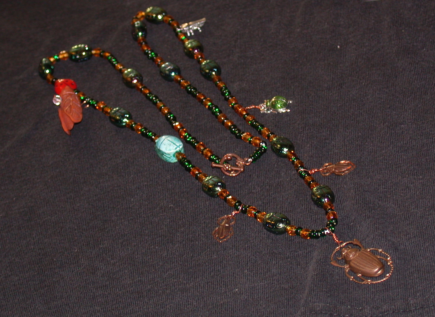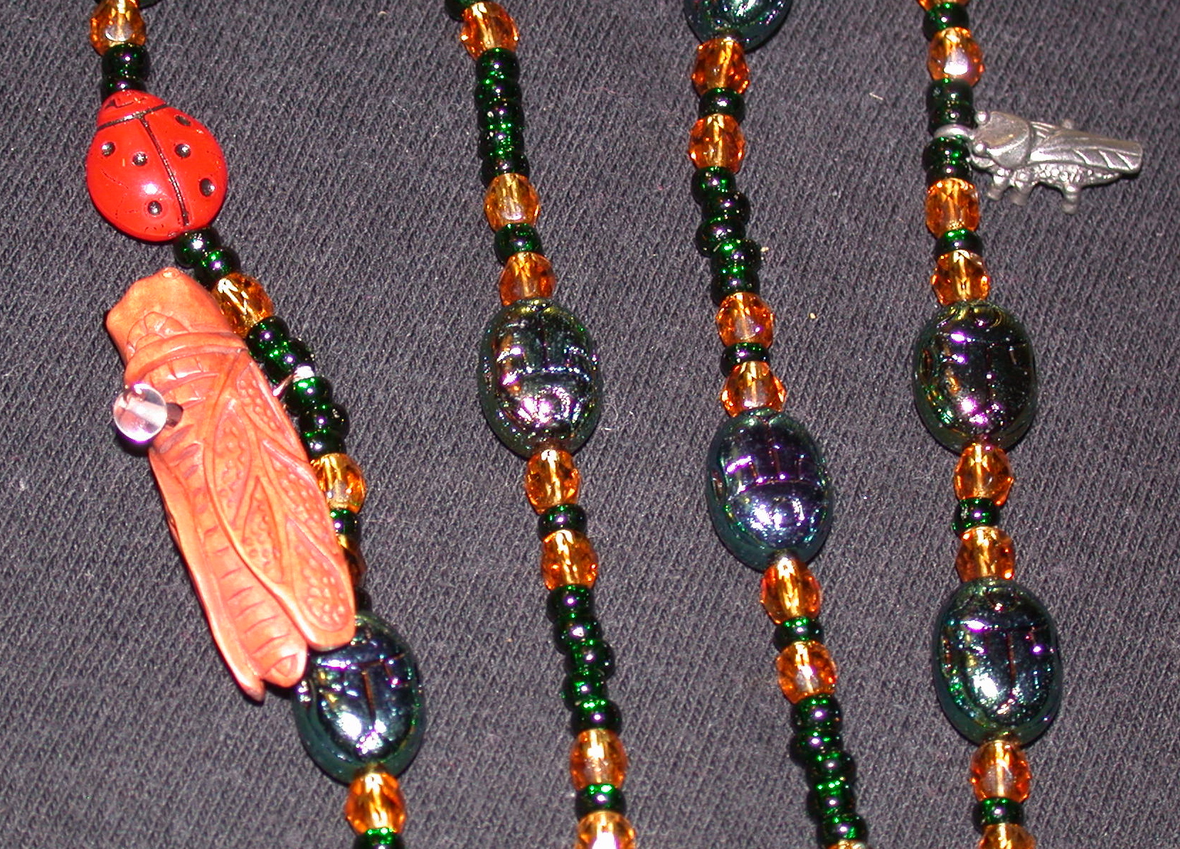 In all shots, it is brilliantly covered in bugs, and the world rejoices. I adore my friends for knowing my tastes -- in both color and creatures -- and I adore my necklace for being long and shiny and covered in bugs.